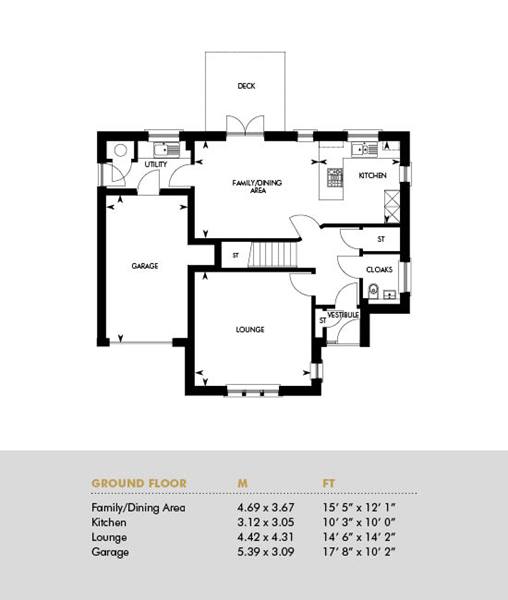 The four bedroom Cleland features a spacious formal lounge to the front with a generous combined family/dining area and kitchen to the rear, where French doors open out to the decked area and garden. Upstairs the spacious landing leads to a family bathroom and four generous bedrooms, two of which are en suite.