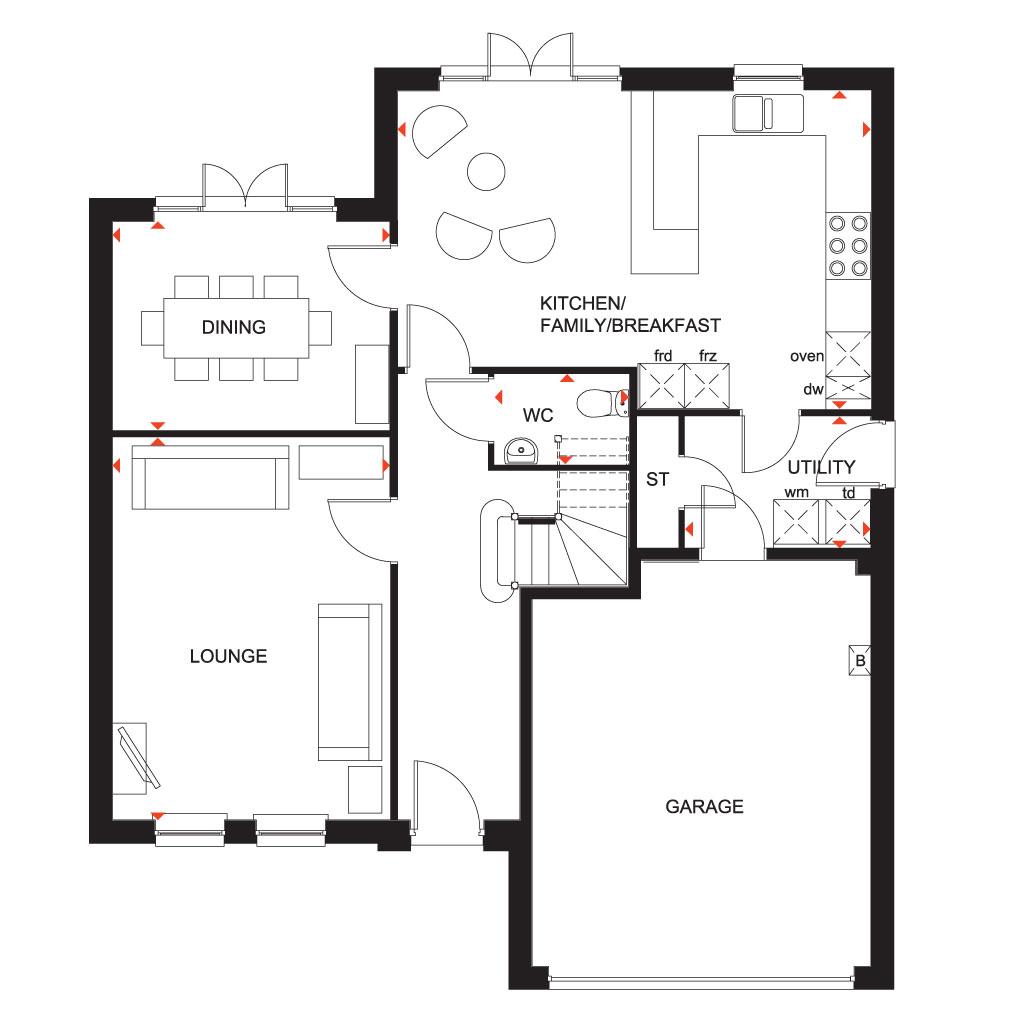 The hub of the home is a generous open-plan kitchen with breakfast and family areas also leading to the garden via french doors. A utility room adjacent to the kitchen has convenient access to the integral double garage. An elegant master bedroom with juliet balcony and full en suite is upstairs, along with three further double bedrooms and a family bathroom with shower.