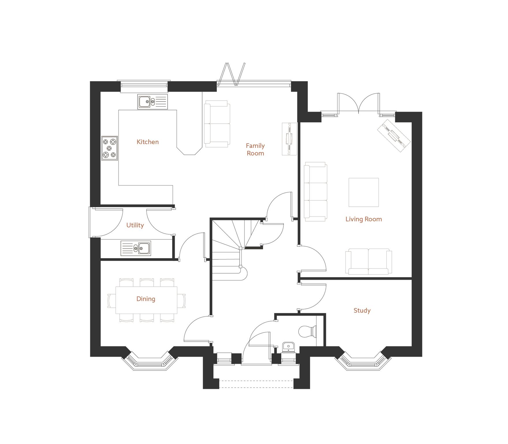 The Joyford forms part of this exclusive development with each home offering it's own individual character. High quality design and build combined with high energy efficiency all add to the comfort and lifestyle at this great location. A superb four bedroom detached family home with double garage featuring an open plan kitchen / family room, living room, dining room, study and utility. Upstairs, there are four double bedrooms, two with en-suite and a family bathroom.