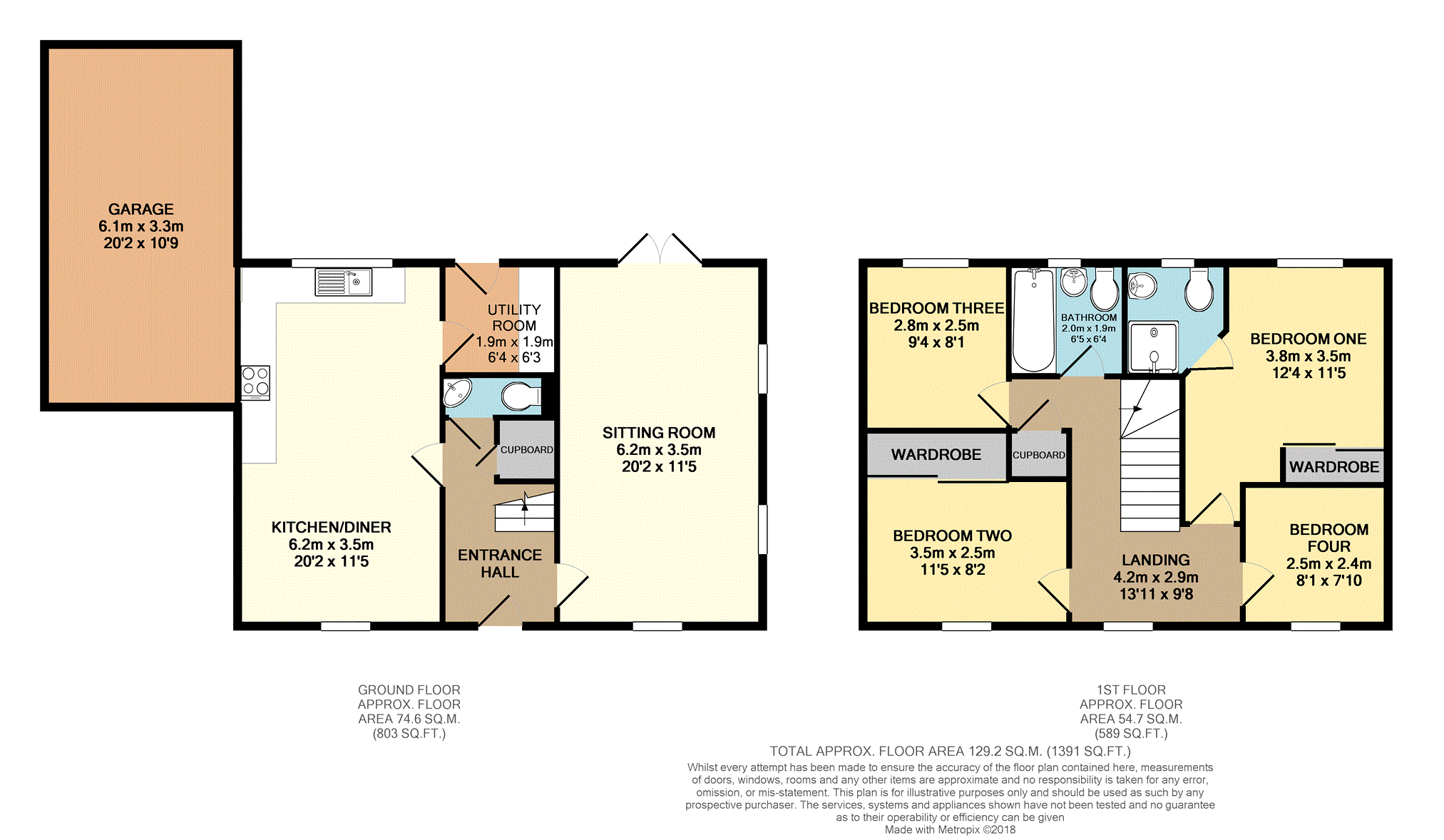 The first floor includes four large bedrooms, the master with en-suite and wardrobes, plus wardrobes in the second double, a family bathroom and an airing cupboard.