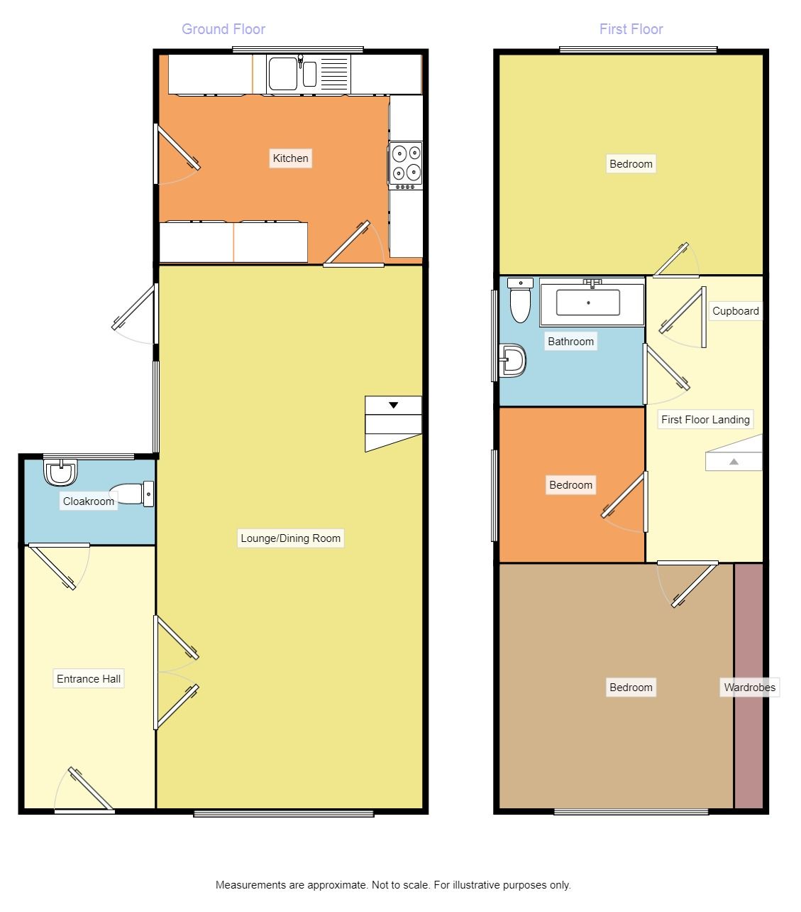 Stairs lead to the first floor landing from the lounge/dining room, access to loft space and airing cupboard.
