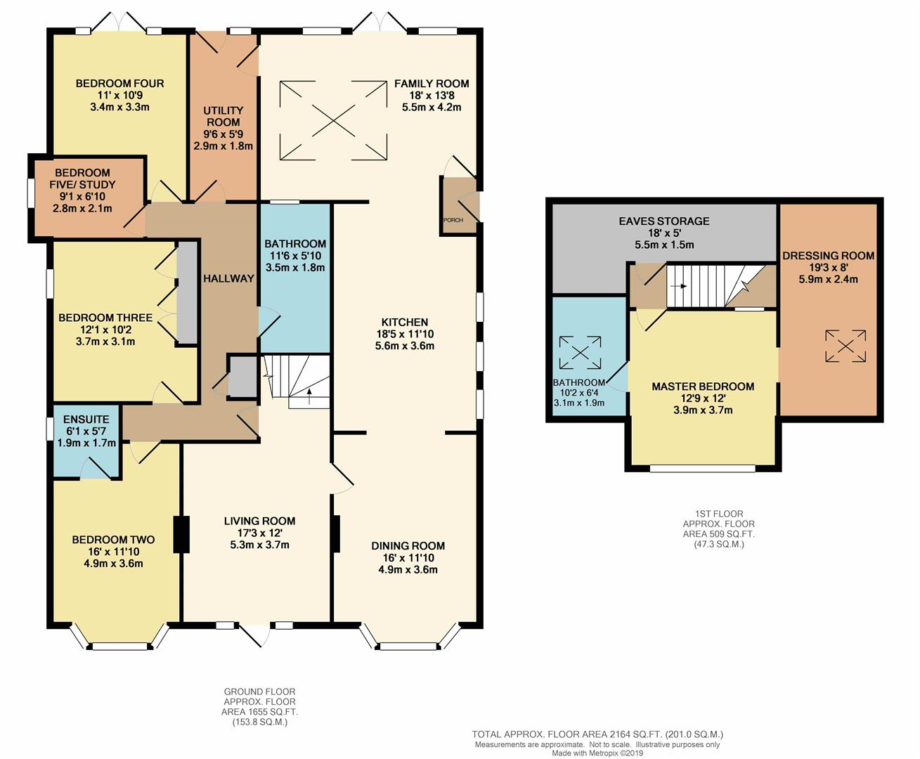 To the first floor is the master suite with large bedroom, extensive dressing room, ensuite shower room and large eaves storage areas with restricted head height.