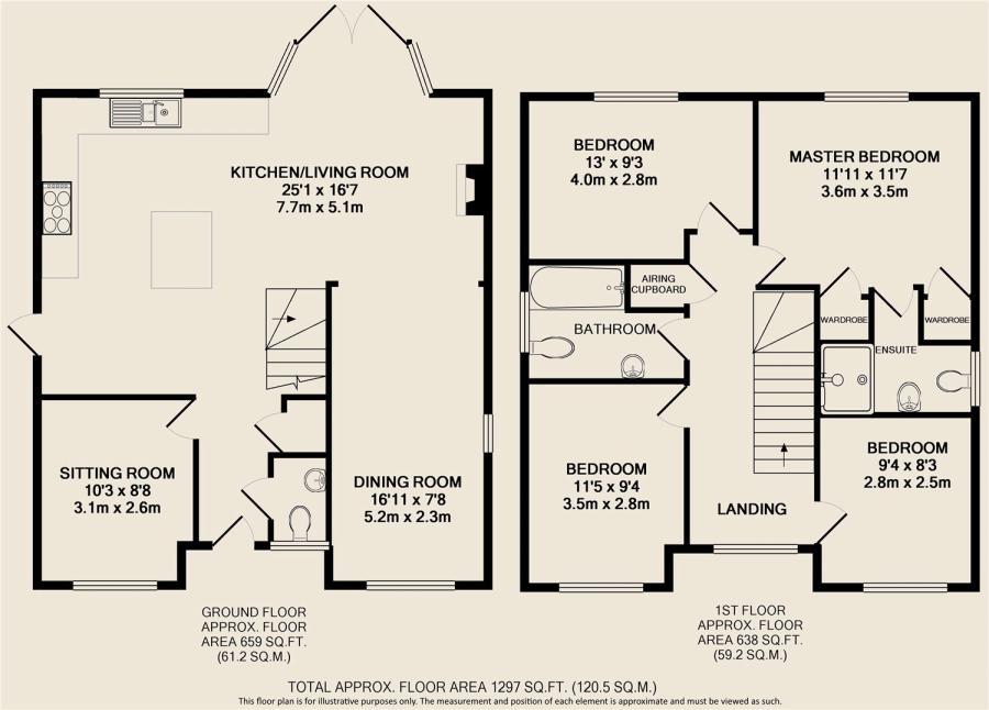 Upstairs the master bedroom has an en-suite shower room and fitted wardrobes and there are an additional 3 double bedrooms and family bathroom.