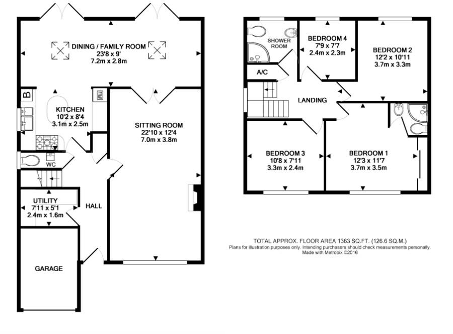 A turned staircase rises to the first floor with a central galleried landing leading to four bedrooms (three doubles, one single) and a modern shower room. The master bedroom also has an en-suite shower room and fitted wardrobes.