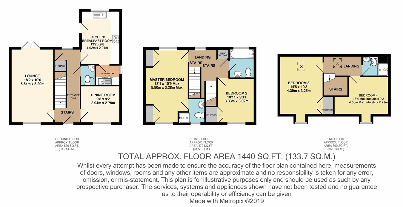 The property has very spacious accommodation, set over three stories with large room sizes, briefly comprising; Entrance Hallway with storage cupboard, Cloakroom/WC, an 18' Lounge, Dining Room, Kitchen/Breakfast Room and Utility Room. To the first floor is the Master bedroom with fitted wardrobes and an En-suite Shower Room. There is also the second Bedroom with fitted wardrobe and Family Bathroom with a modern white suite. To the second floor are two further double Bedrooms (one with fitted bedroom furniture including wardrobe) and a modern Shower Room. The landing is also large enough to be utilised as a study space.