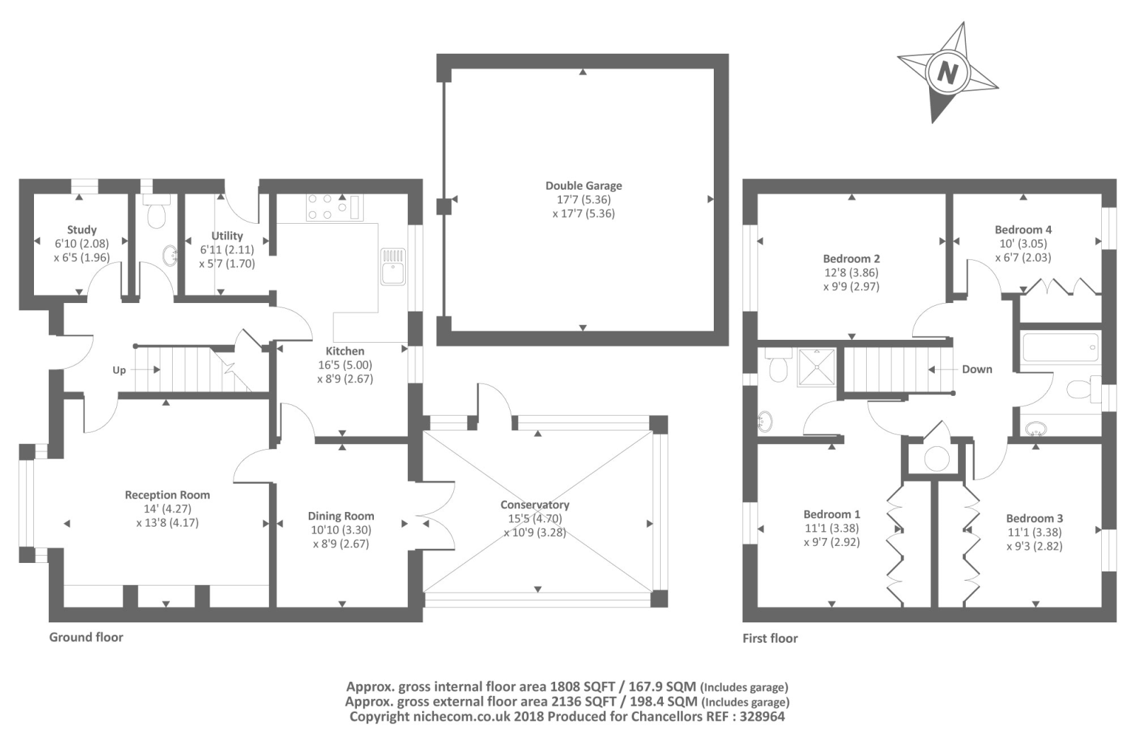 Formerly the show home, the property offers versatile living accommodation with enclosed rear garden. Internally the property has sitting room, dining room, study, downstairs cloakroom, utility room, conservatory, four bedrooms, access to a double garage and driveway.