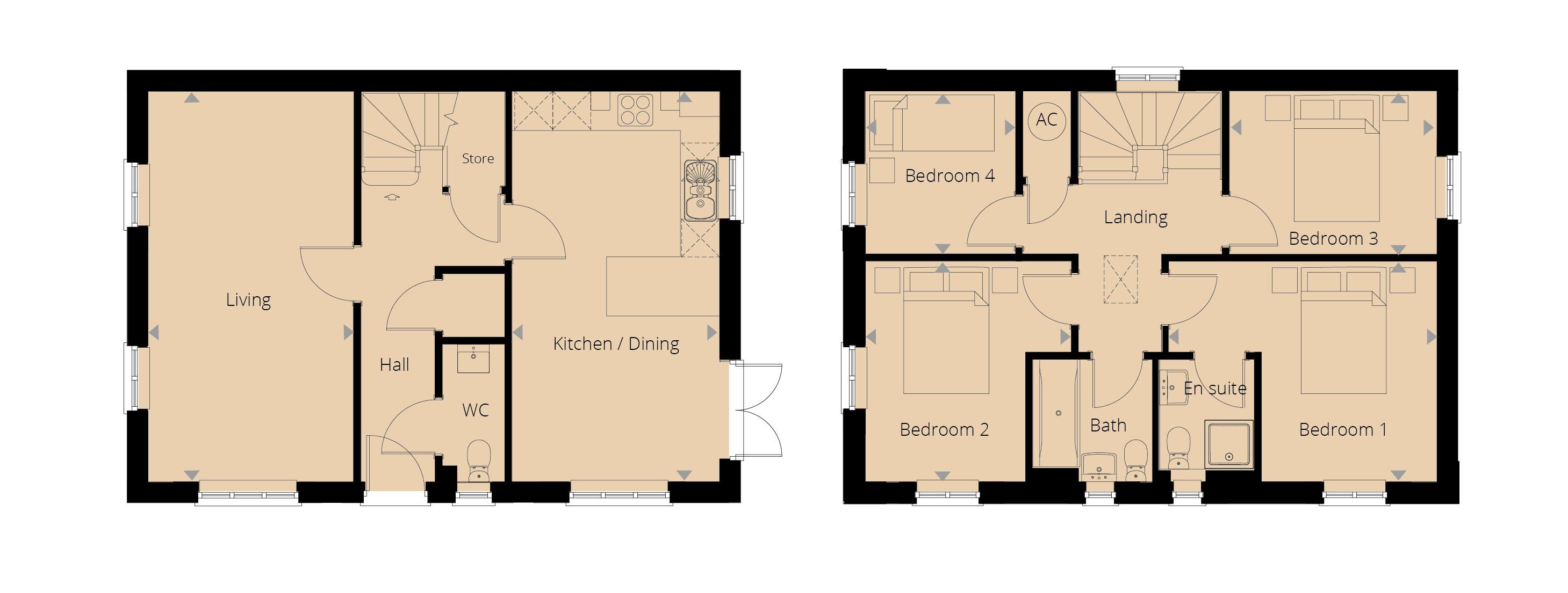 4 Bedroom detached house with en suite to master bedroom, open plan kitchen / dining room with French doors onto garden.
