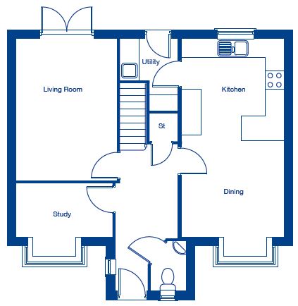 The Holcombe A is a beautiful double fronted four bedroom detached home with garage. The ground floor comprises a spacious open-plan kitchen and dining room with practical utility room, a lounge with French doors that lead onto the patio area and rear garden, a study and WC cloakroom. The first floor provides four double bedrooms and a modern bathroom with thermostatic shower. The master bedroom offers en suite shower facilities.