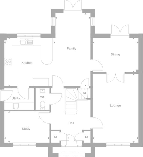 Brand new 5 bedroom executive detached home from Miller Homes part exchange available on selected plots, visit us! Showhome and marketing suite open Thursday to Monday, 10am to 5pm. Mulberry Fields, Mill Straight, Southwater, RH13 9AH The Chichester at Mulberry Fields Bounded by fields and mature woodland yet less than a mile from modern village amenities, this beautifully landscaped new neighbourhood brings a selection of energy efficient two, three, four and five bedroom homes to Southwater, a vibrant local community set in an outstandingly convenient location. Mulberry Fields will be a Premium development for Miller Homes, with an upgraded specification. The accommodation includes: Feature entrance porch, spacious hallway leading to impressive triple-aspect kitchen/dining/family space with breakfast bar and French doors to the garden, utility room with access to the outside of the property, separate dining room also with French doors to the garden, double doors leading through to