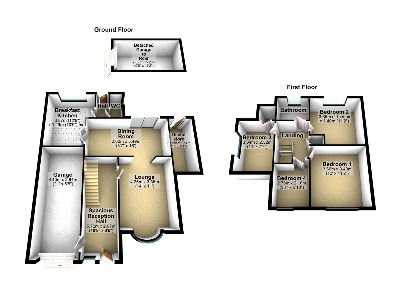 Car enthusiasts will appreciate the two garages. One integral and approached by the driveway at the front; the other being a superb detached garage approached via the gated side driveway. In addition the house has a separate attached store accessed from the rear garden. If two garages are not required, the integral garage offers further potential to be absorbed into the living accommodation.