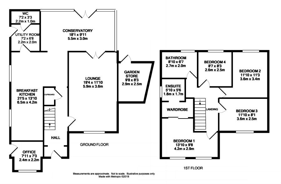 Conservatory 18' 1" x 9' 11" (5.51m x 3.02m) An opening from the dining kitchen or French doors from the lounge provide access into this very good-sized conservatory. It has a bank of windows to two elevations with views over the gardens, and French doors leading outside.