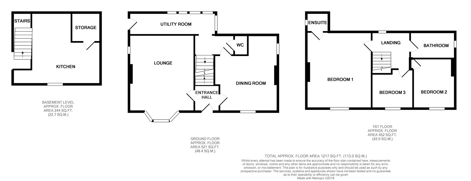 Bathroom 8'10" x 4'7" (2.7m x 1.4m). UPVC double glazed window to the rear. Three piece suite in white, comprising: Bath, low flush WC and wash hand basin. Part tiled to walls. Radiator.