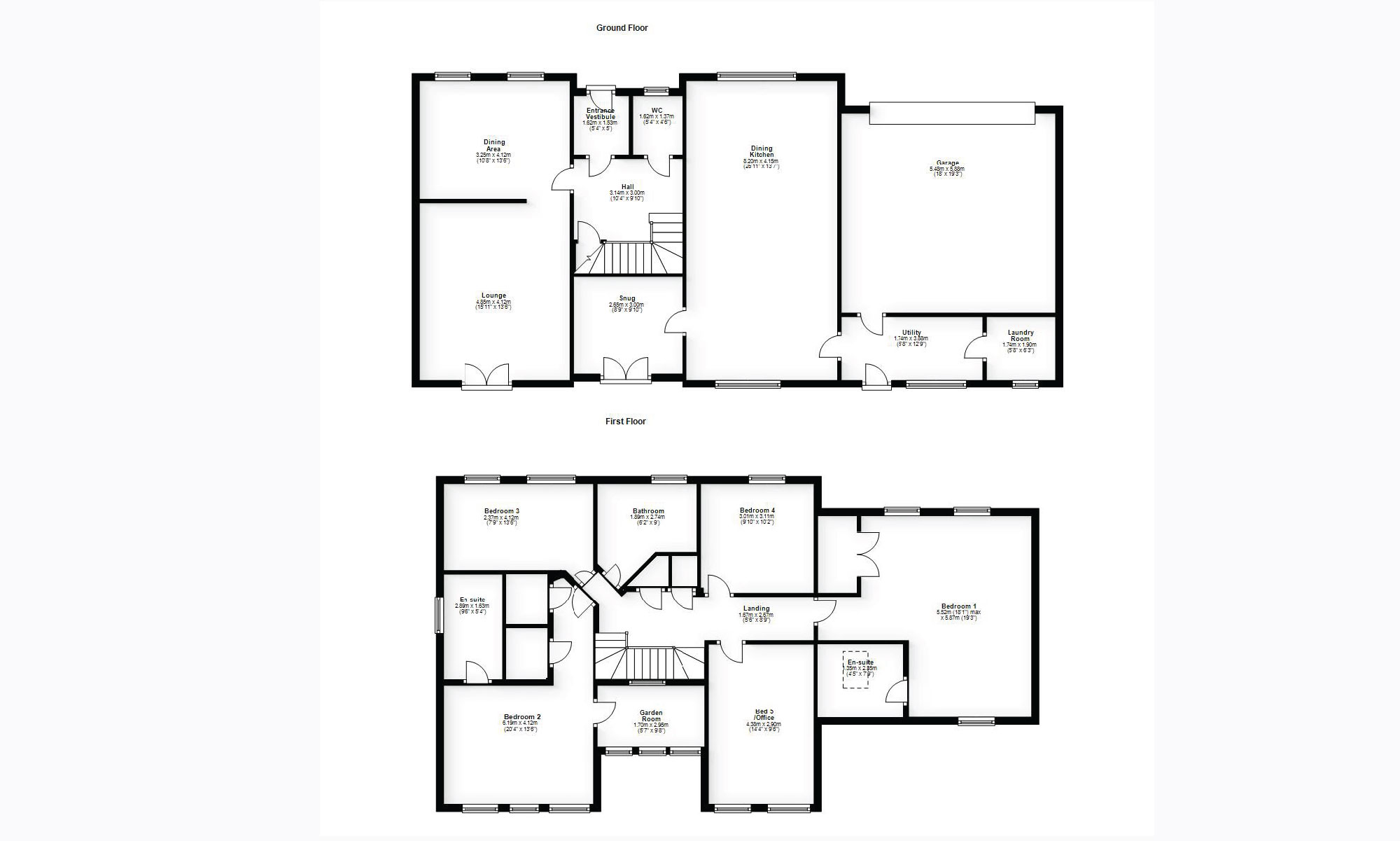 The property is accessed via an entrance vestibule leading onto a welcoming reception hallway with stairs to the upper floor. To one side of the property is a large open-plan sitting and dining room spanning the full depth of the property with a central wood-burning stove providing a charming focal point to the home. Glazed doors and windows also provide access to the rear garden and some striking views. To the opposite side of the property is the outstanding recently fitted Ashley Anne kitchen and dining area. Finished to the highest of standards with integrated Neff appliances and Limestone floor. One door from the kitchen gives access into a utility room which in turn leads into the double garage and the boiler room. Another door from the kitchen provides access to the beautiful gallery style sun room with floor to ceiling windows, a perfect place to relax and enjoy the views. There is also a handy cloakroom WC located on the ground floor.