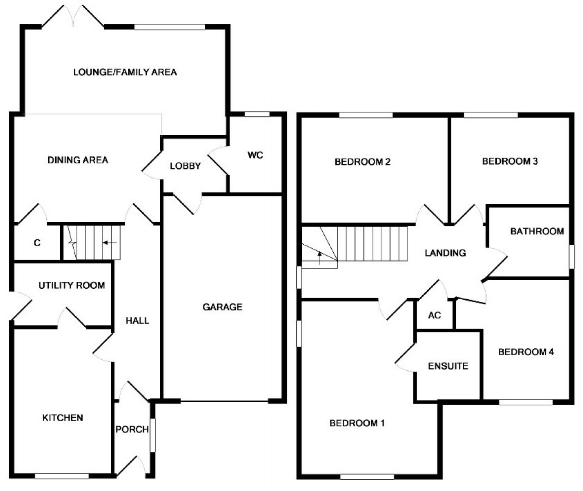 A UPVC double glazed entrance door opens into an entrance hall which provides access to, open plan dining area and lounge/family area, kitchen, stairs to the first floor landing.