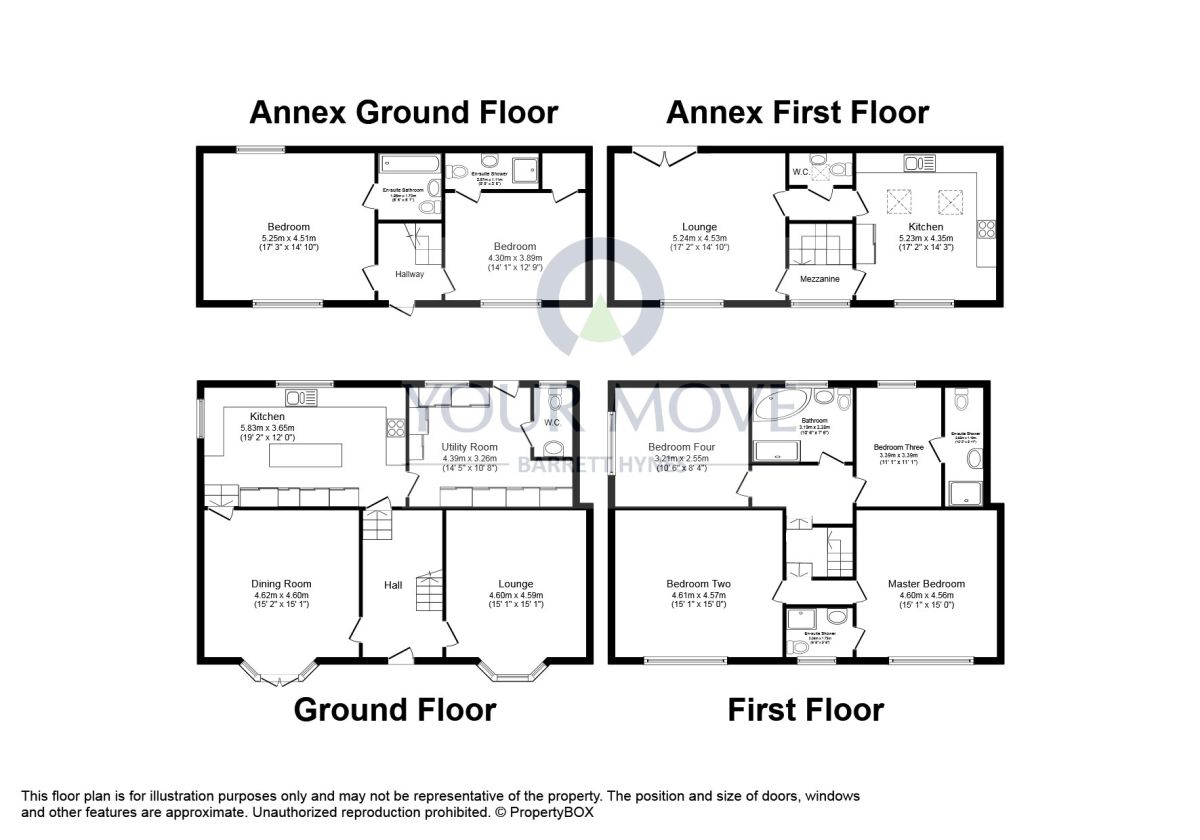 The Annex again is large in nature and consists of two large double bedrooms both with en-suites, a spacious lounge with Juliet balcony which enjoys views of the extensive gardens, a spacious dining kitchen and a separate w.C.