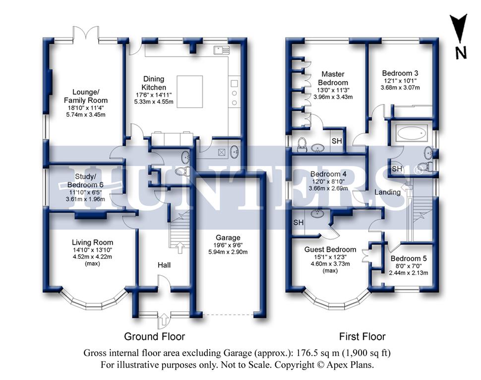 • Five very well proportioned bedrooms with en-suites to the master and guest bedroom