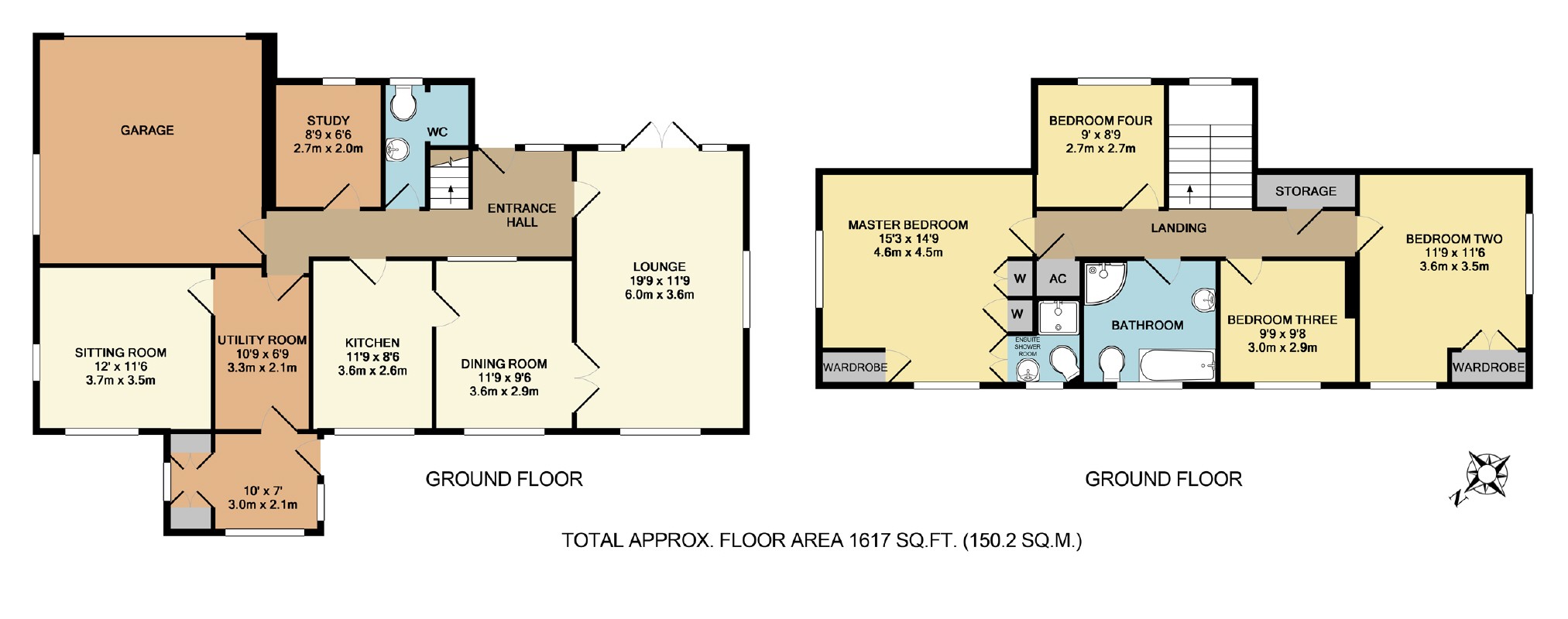 At first floor there are four bedrooms, the largest of which has duel aspect windows which overlook the rear gardens and fields beyond and incorporates and en suite shower room. There is a spacious house bathroom with separate corner shower, Outside: There is a driveway that provides ample hardstanding leading to an integral double garage with remote controlled up and over entrance door and a floor mounted Grant central heating boiler.