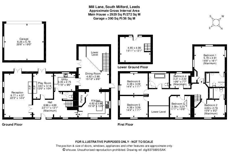 To the first floor the master bedroom has a fabulous full length feature window with two further windows overlooking the rear garden and is serviced by its own en-suite bathroom comprising a three piece white suite with a separate walk-in shower cubicle. Bedroom two is a great size double bedroom and benefits from its own en-suite bathroom having a three piece white suite. Three further double bedrooms are complimented by a stunning house bathroom comprising a contemporary three piece suite with a stand-alone Jacuzzi bath that enjoys far reaching views over open countryside and a separate walk-in shower cubicle attractive tiled flooring. Bedroom six is a single bedroom and is currently used as a walk-in dressing room with extensive storage space and hanging rails.