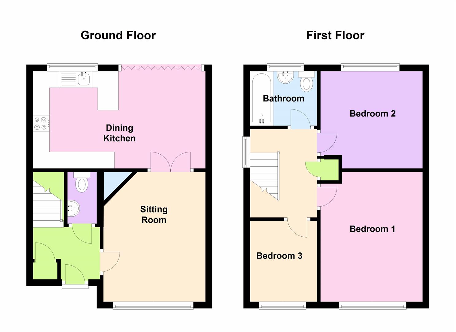 The internal accommodation briefly comprises; entrance hall, downstairs WC, lounge, dining kitchen, first floor landing, three bedrooms and a family bathroom.