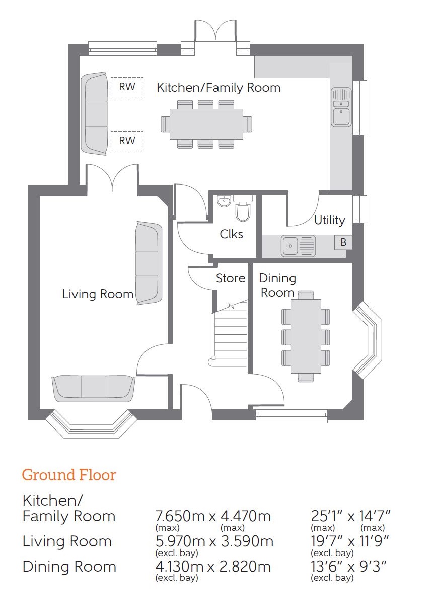 The family lounge is a lovely light room with a large bay window to the front and double doors to the rear which lead into the kitchen / family room.