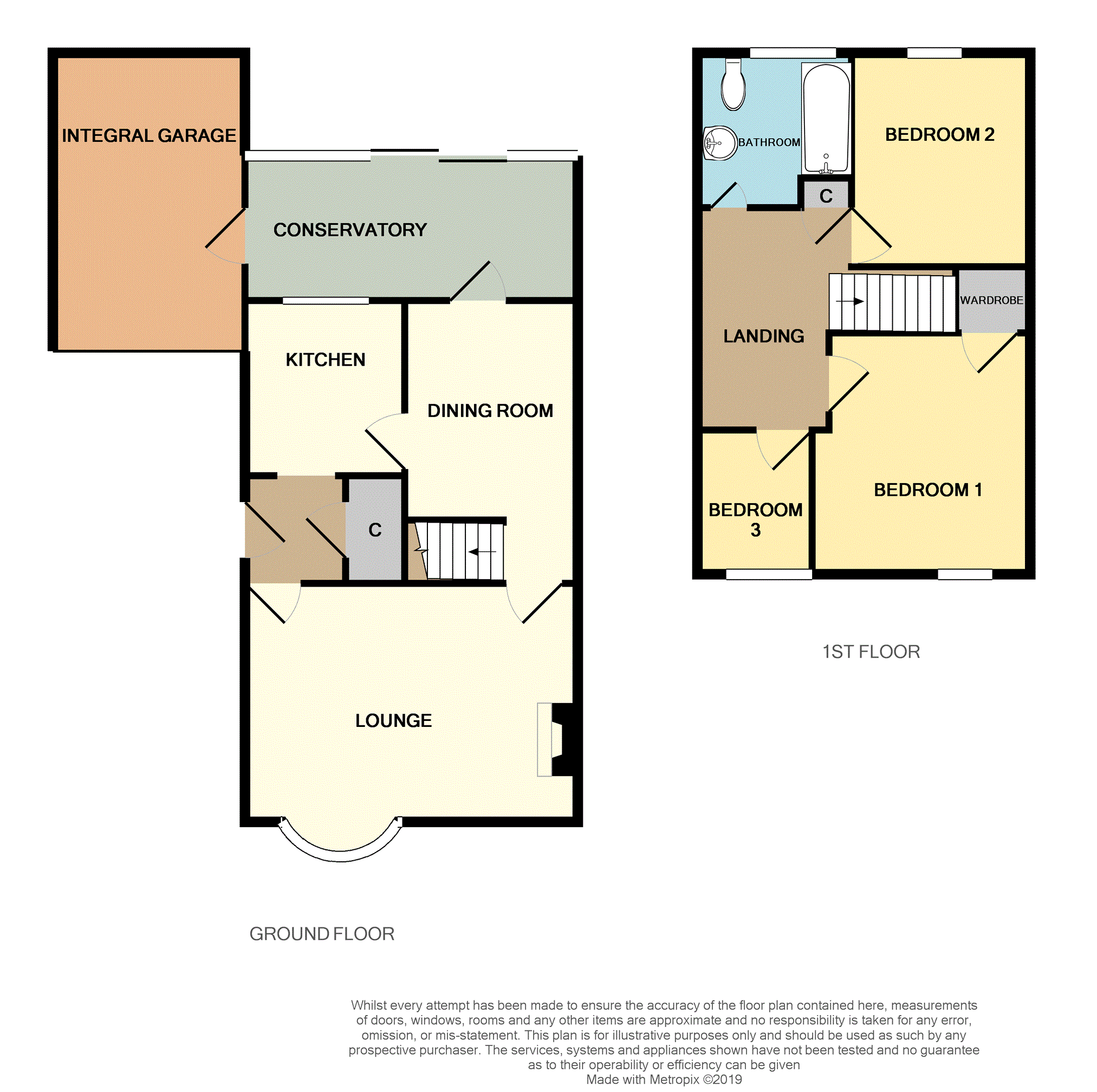 The conservatory has tilt and slide patio doors to the rear garden, a doorway leading to the integral garage and laminate floor.