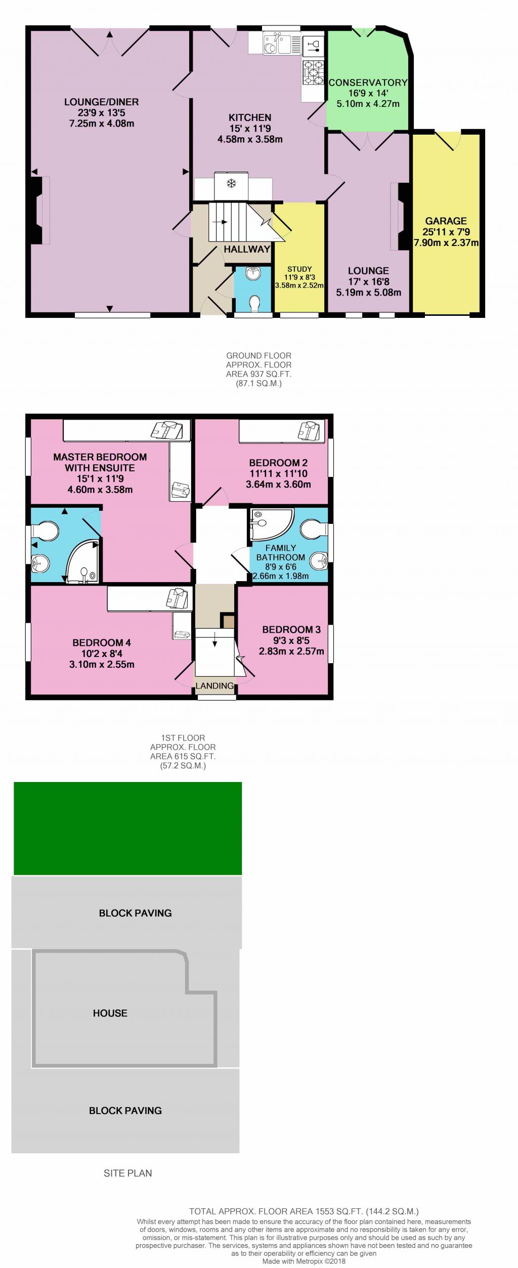 Externally the garden provides a patio ideal for a seating area and grass lawn for playing. A well tended garden with raised flower beds, mature bushes and shrubs. To one side is the garage with pitched roof and runs from the front of property right through to the back garden. To the other side there is access to front garden via back gate. To the front garden there is block paving driveway and parking for two cars.