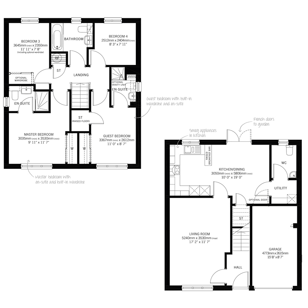Upstairs there are four bedrooms and a family bathroom. Both the master bedroom and guest bedroom have fitted wardrobes and ensuite shower rooms finished to a superb standard.