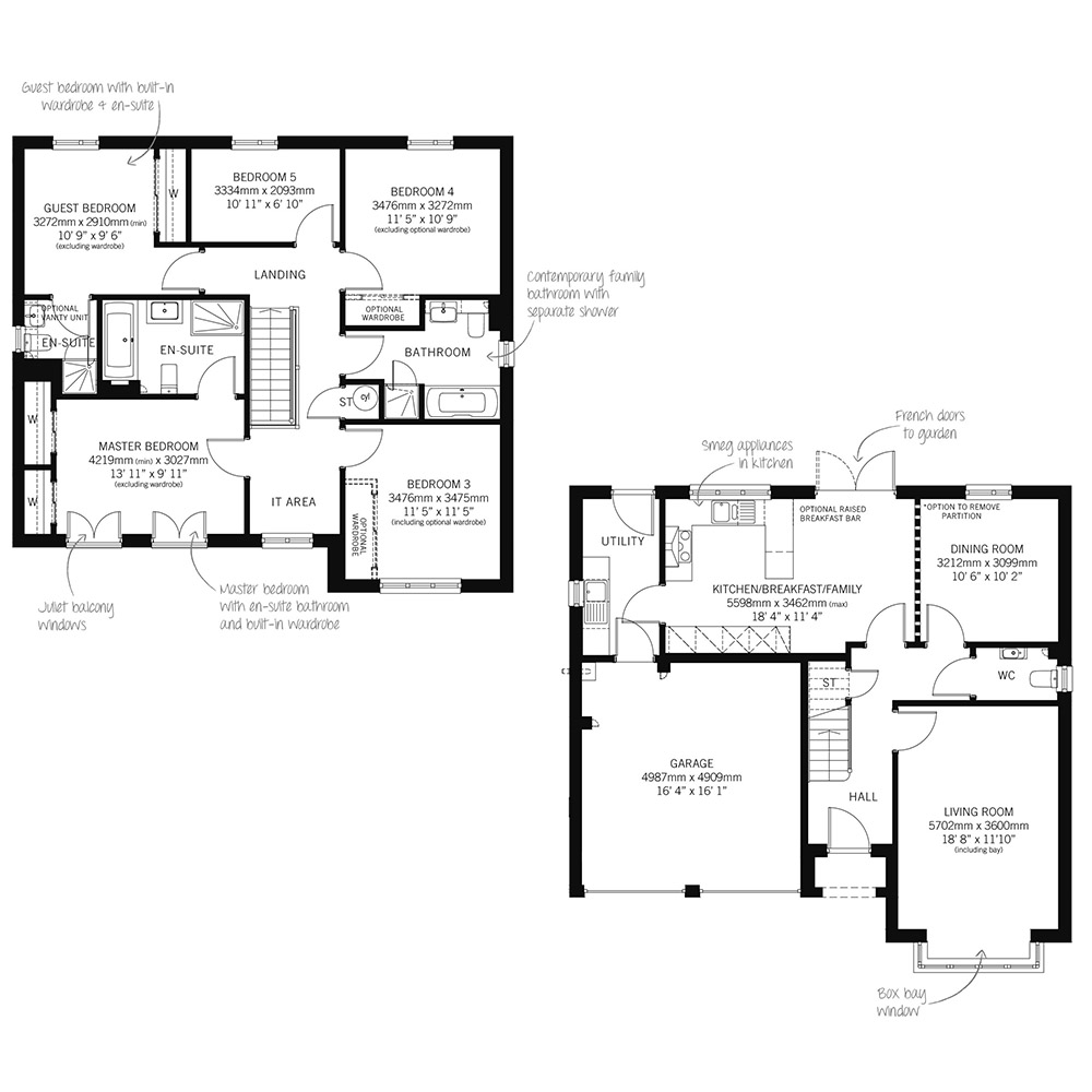Downstairs you will find an impressive living room with walk-in bay window, as well as a formal dining room. The superb kitchen/family room features a breakfast bar, French doors opening onto the garden and access to a spacious utility room.