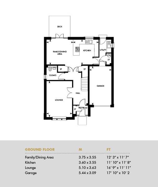Flexible downstairs family living space, four double bedrooms plus an additional study/fifth bedroom make The Crichton a family home with room to grow. Downstairs the l-shaped entrance hall gives access to the formal lounge and large open plan kitchen and family/dining room, which leads through to the utility room and integral garage. Upstairs are four spacious bedrooms, two of which are en suite, along with a generous family bathroom which boasts a bath and separate shower. The fifth upstairs bedroom is incredibly flexible and can be used as a nursery, playroom, study or snug ensuring this home can grow with you.