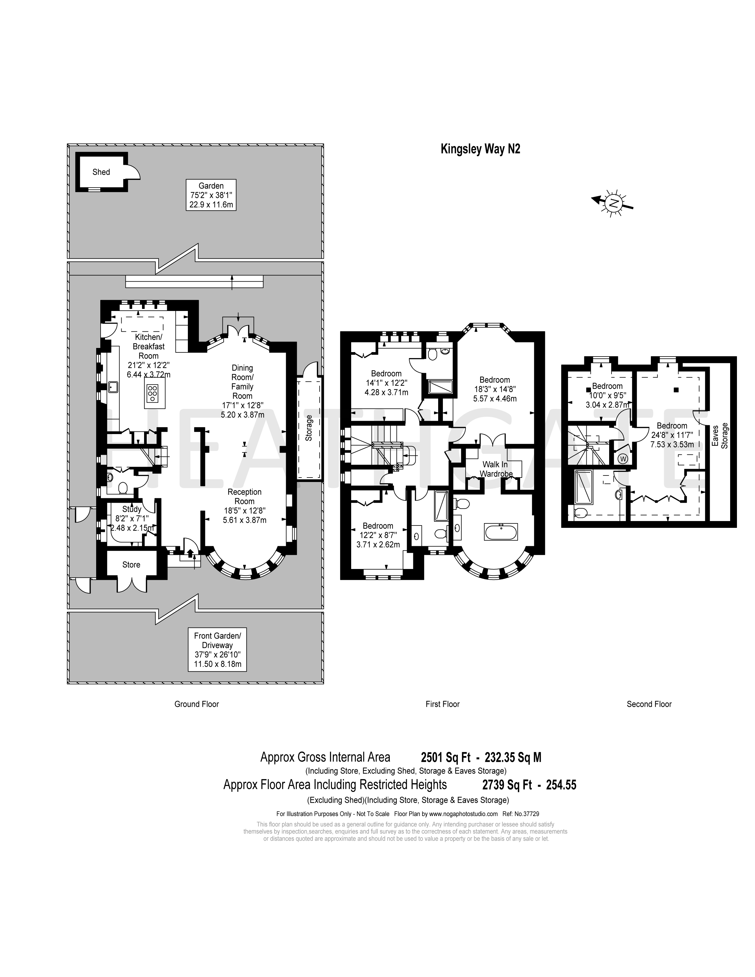 A charming, 5 bedroom, detached family house, offered for sale in Kingsley Way which is a sought after road close to The Market Place and Lyttelton playing fields, located within Hampstead Garden Suburb. The house offers good sized living accommodation comprising an entrance hallway, a spacious reception room, a dining room/family room, kitchen/breakfast room, study and guest cloakroom. The first floor consists of a master bedroom with ensuite bathroom and walk in wardrobe, 2 further double bedrooms and a family bathroom. On the top floor there are 2 further bedrooms and a further family bathroom. There is also off street parking for 2 cars and a large 75' rear garden which can be accessed from the rear reception room and kitchen.