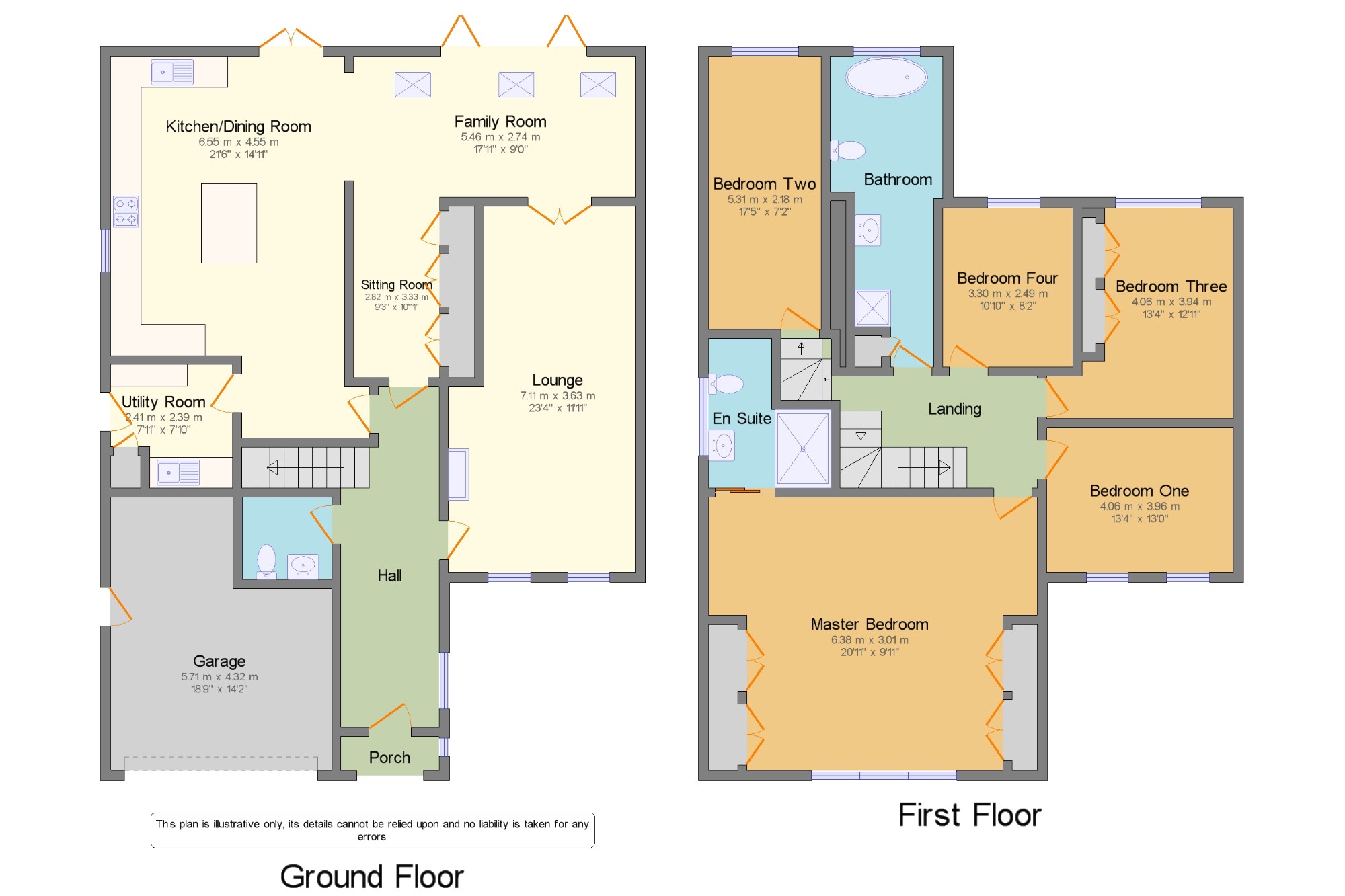 Five double bedrooms bathrooms