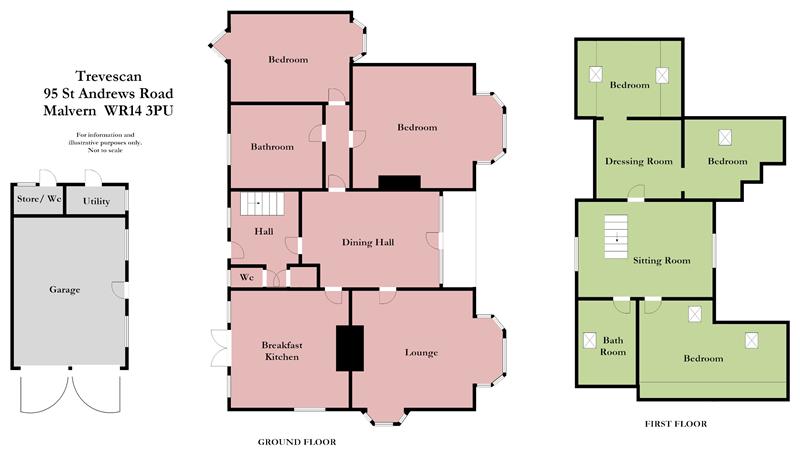 Trevescan enjoys a convenient location on the corner of Peachfield Road and St Andrews Road just over mile from the centre of Great Malvern where there is a comprehensive range of amenities including shops and banks, Waitrose supermarket, the renowned theatre and cinema complex and the Splash leisure pool and gymnasium. Even closer at hand is the popular and busy centre of Barnards Green where there are further facilities including shops, takeaways and a Co-op supermarket. Transport communications are excellent. Great Malvern railway station is only a mile away with trains direct to Oxford, Reading and London. Educational facilities are excellent. The property stands within the catchment area of some of the best primary and secondary schools in the region including The Chase, Malvern College and Malvern St James Girls' School all of which are within walking distance.