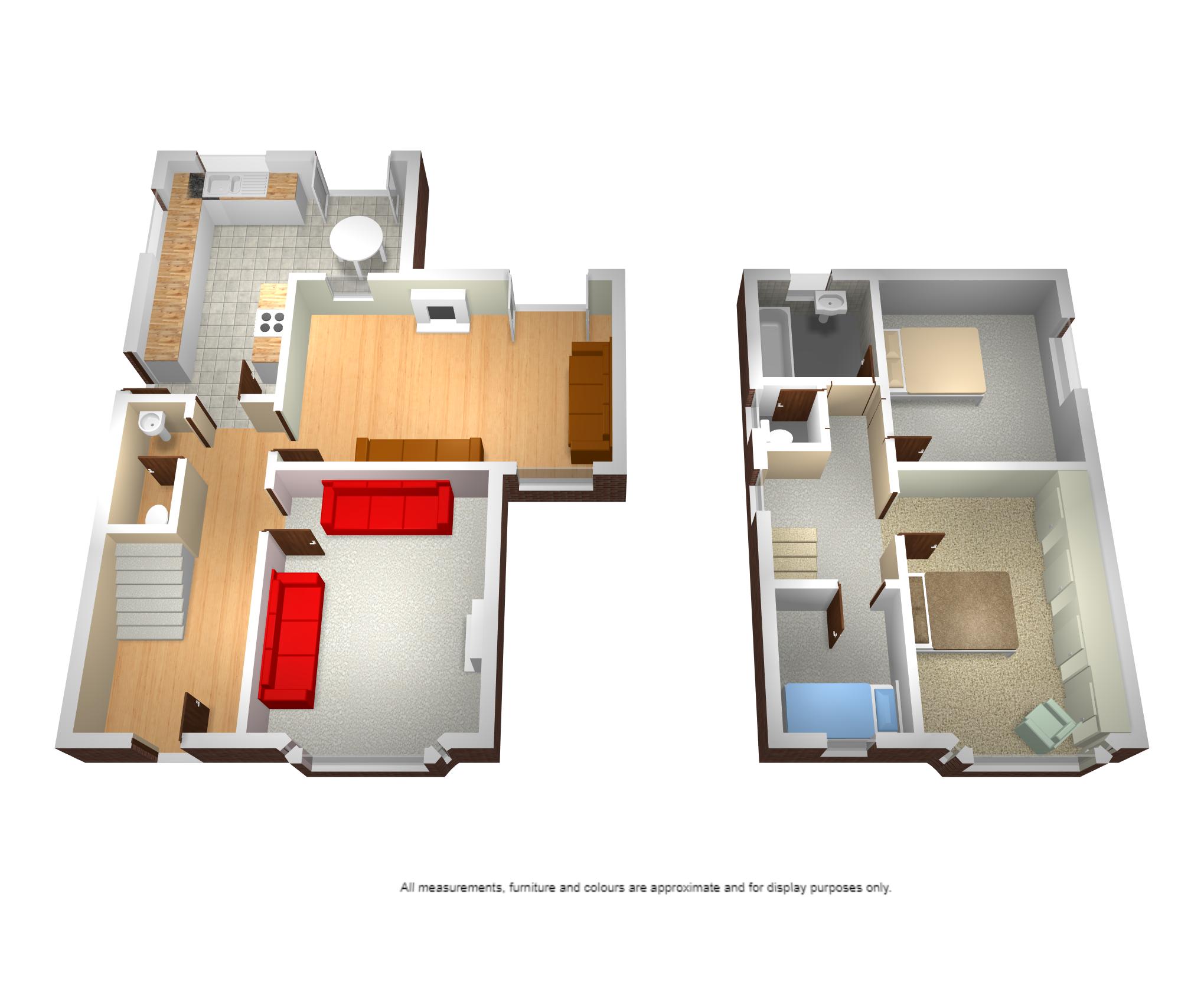 Two Side facing upvc double glazed windows, rear facing upvc french doors, fitted modern base and wall units incorporating dishwasher, washing machine, oven and four ring electric hob with extractor. Bowl and half sink unit, laminate flooring and radiator.