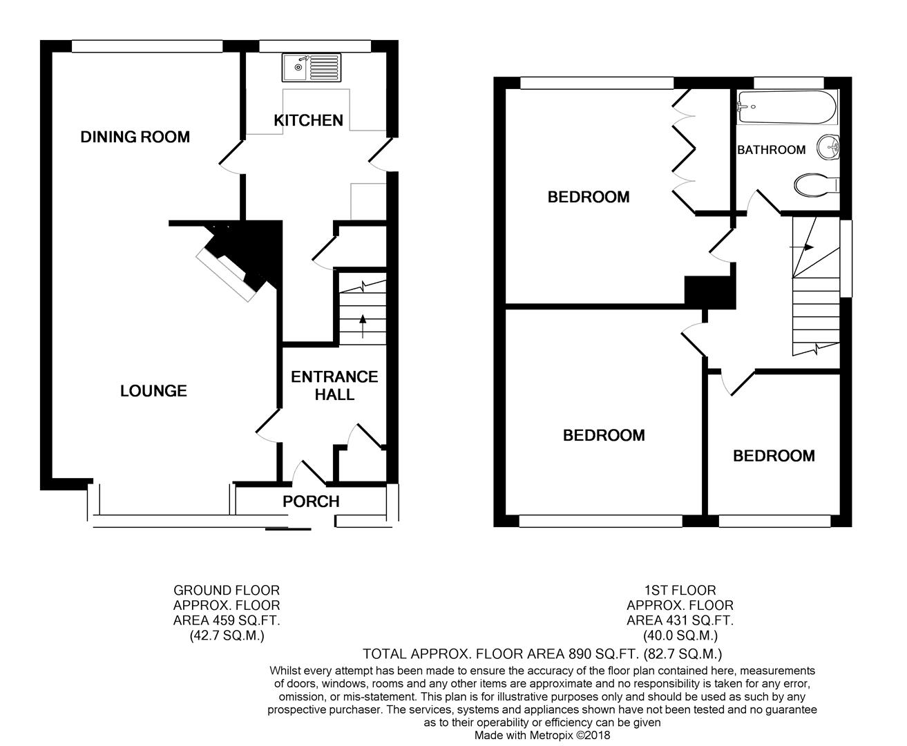 With a double glazed obscure window to the rear aspect and three piece suite comprising a low flush WC, wash hand basin and bath and fully tiled walls.