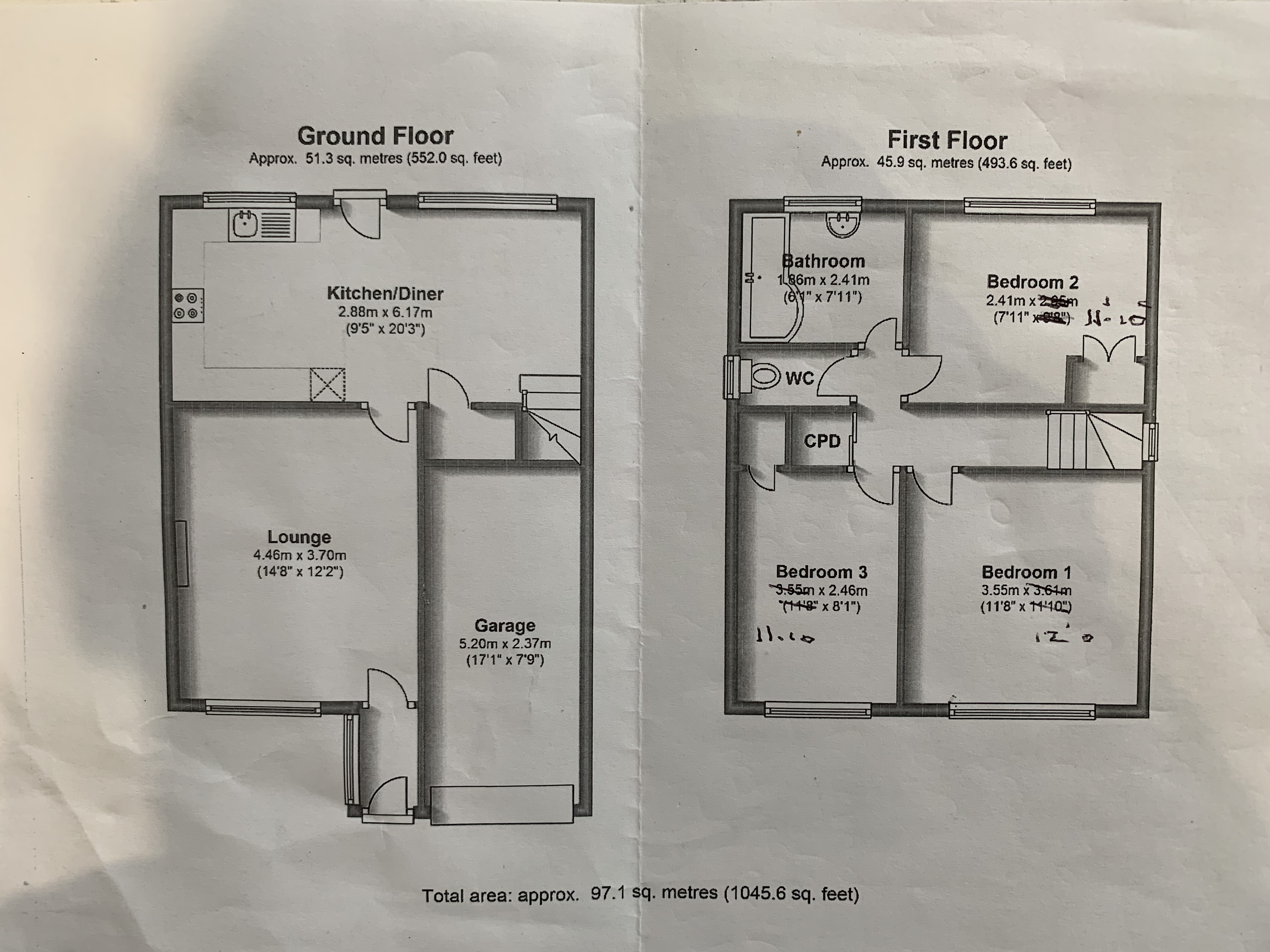 Kitchen/diner 20' 2" x 9' 4" (6.17m x 2.87m) The large spacious Kitchen Diner has a range of wall and base units in cream wood. There is an integrated electric oven and hob. There is vinyl flooring to the kitchen and carpet to the dining area. There is an under stairs storage cupboard and a door providing access to the rear garden.