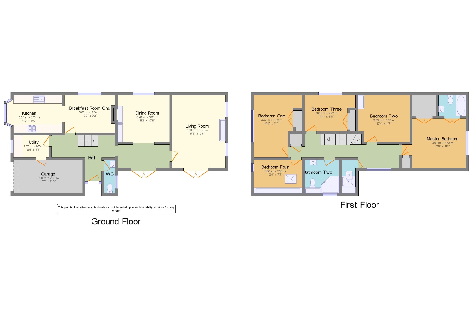 Bedroom One14'8" x 11'7" (4.47m x 3.53m).