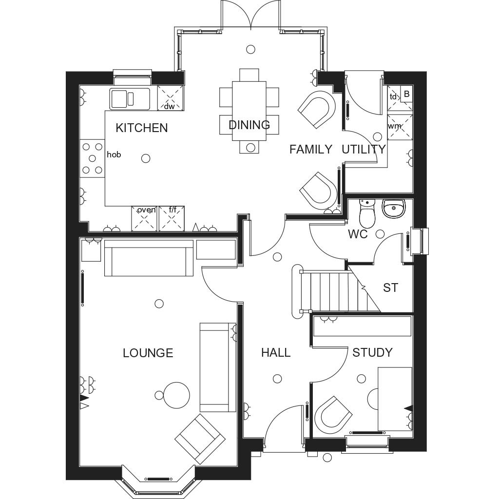 The holden with flooring provided - Featuring a modern kitchen designed with integrated dining and family areas, full-height glazed bay with French doors to the garden and a utility room. There is also a spacious lounge and useful study. Upstairs there is a large master bedroom with en suite as well as two further double bedrooms, a single bedroom and a family bathroom with bath and separate shower.