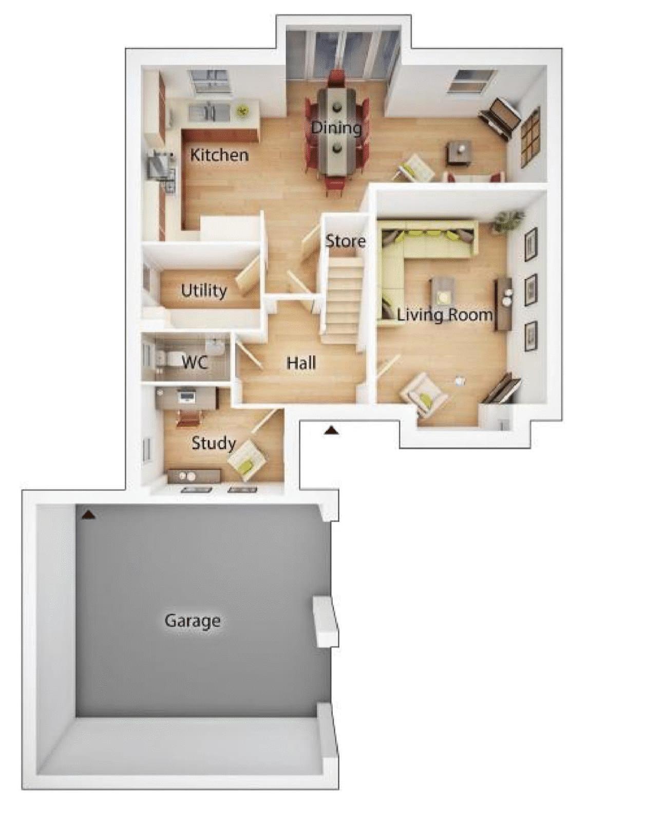 The front garden is level with low maintenance Cotswold chippings and a large raised flower bed.