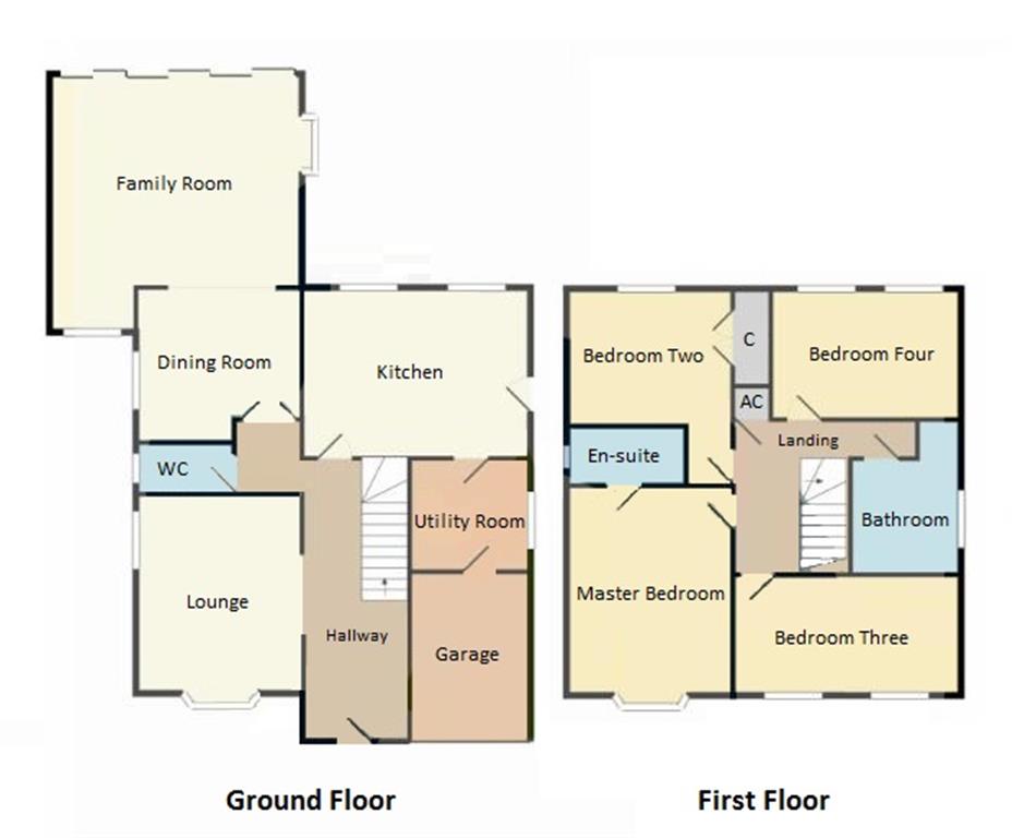 Stairs rise from the entrance hall. Doors lead off to four bedrooms and the family bathroom. Loft access and airing cupboard.