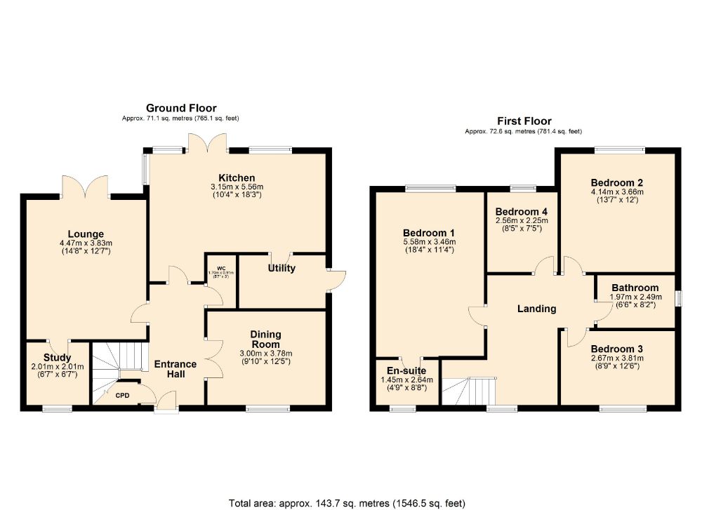 An opportunity has arisen to purchase the original Twigden Homes show home which has been beautifully maintained. The property offers a well proportioned family home set over two floors and is available with no onward chain. The accommodation comprises reception hall, cloakroom/WC, lounge with an adjoining study room, separate dining room, open plan kitchen/breakfast room and utility room. On the first floor, from the spacious landing, is the master bedroom with a range of fitted wardrobes and en-suite shower room. Three further bedrooms and family bathroom. Externally the front garden is hidden behind a mature privet hedge and laid to lawn. There is a driveway to the side leading to the detached garage. The garden to the rear offers a good degree of privacy and has a paved patio, lawn and an attractive well stocked shrub garden. EPC: Tbc