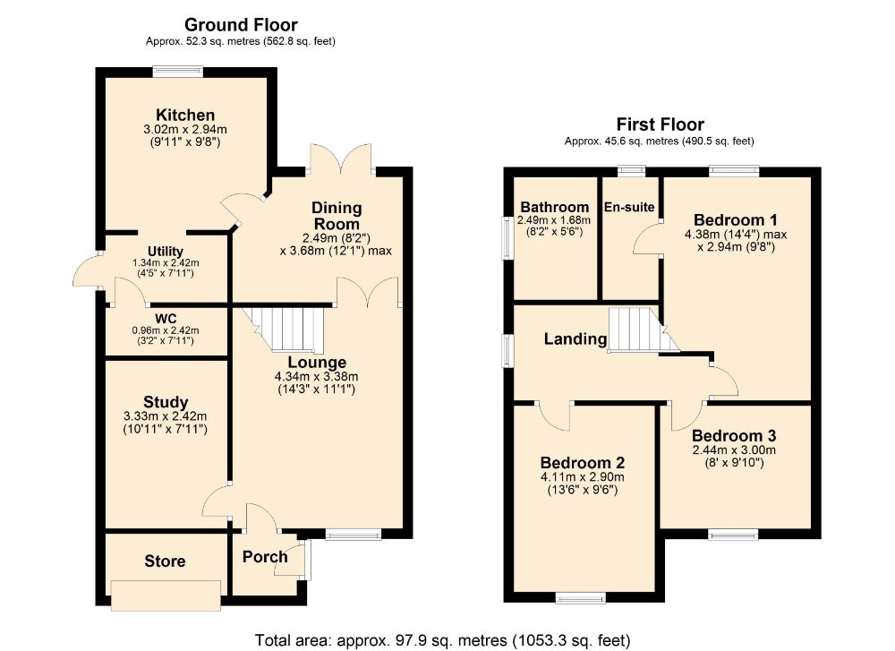 Lounge 4.34m (14'3) x 3.38m (11'1)