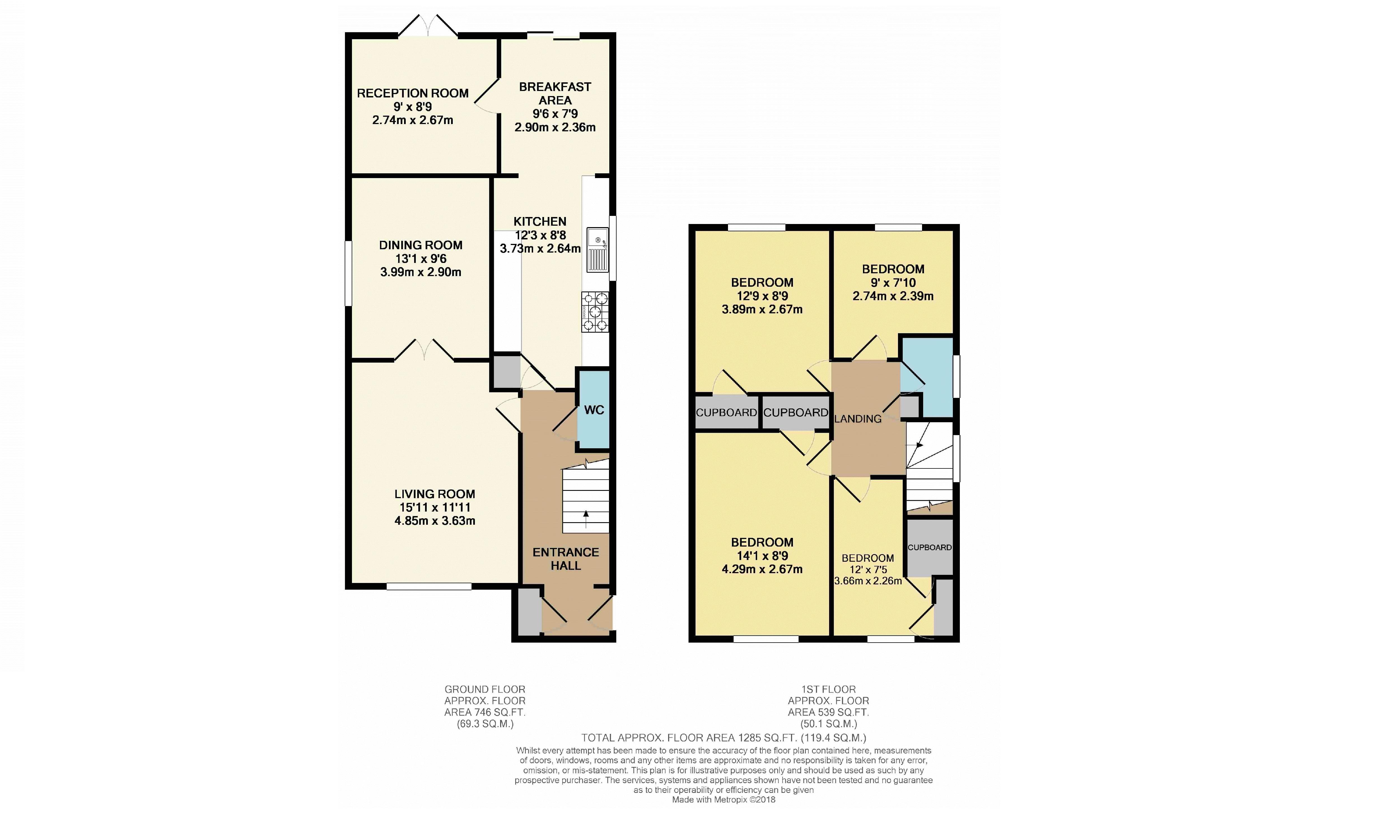 The property has been extended to the rear to provide deceptively spacious living accommodation which comprises a spacious entrance hallway, living room with doors onto the dining room, there is a downstairs w.C, nice sized kitchen which leads onto the breakfast area and an additional reception room, currently used as a sitting room, with doors onto the private rear garden.