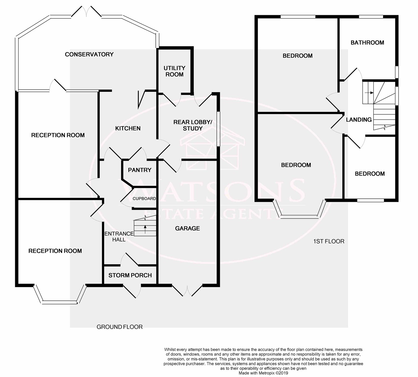Lead lined obscured stained glass wooden window to the side, access to the attic (partly boarded) with power, doors to all bedrooms & bathroom.
