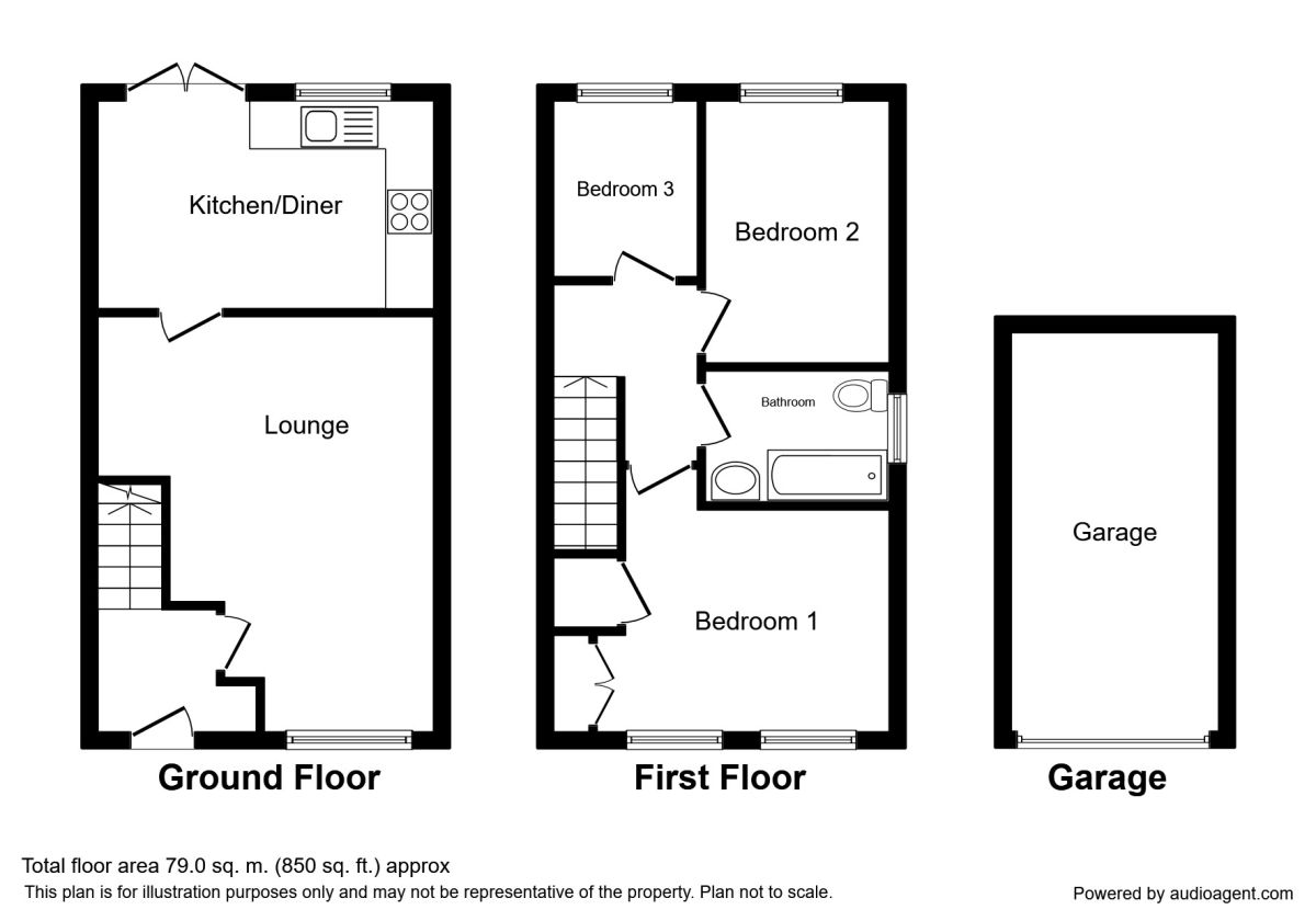 Detached garage ! Cul de sac ! Sought after area ! Come and view this Three Bedroom Detached House to appreciate the accommodation on offer. In brief the property comprises of Entrance Hall, Lounge and Kitchen /Dining Room to the Ground Floor whilst to the First Floor there are Three Bedrooms and a Bathroom/Wc. To the outside there are Well Maintained Front and Rear Gardens and a Driveway leading to a Detached Garage. The property also benefits from Double Glazing and Gas Central Heating. EPC Rating D.