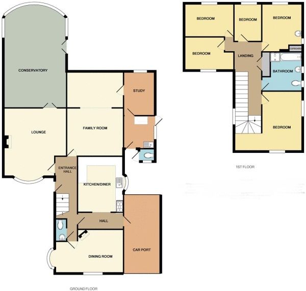 The property is approached via double gates leading to a block paved driveway with turning area having further gates leading into the car port and gated access into the rear garden. The rear garden has a patio area for alfresco dining and is majority laid to lawn with substantial plant, shrub and tree borders.