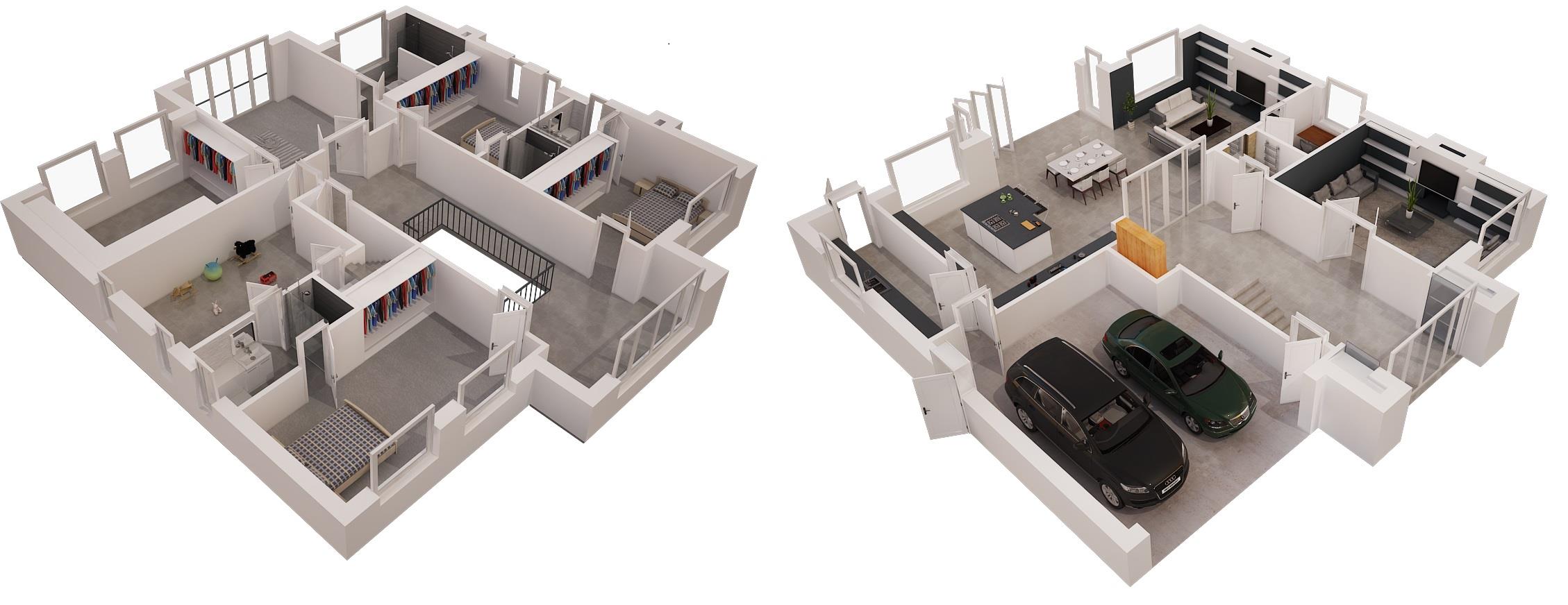 The spacious living accommodation in brief comprises of a grand entrance hallway with galleried landing above extending to the full height of the property, double doors to lounge with log burning stove, good size cloakroom/WC, open plan kitchen/dining/sitting room which extends to over 40 feet long and has a high end bespoke fitted kitchen with integral appliances and island unit, the dining area has a bay with fully bi-folding doors and the sitting area has a media centre, office, utility room and an integral double garage. To the first floor the galleried landing leads to a master bedroom suite which comprises of a bedroom with impressive full height windows and Juliet balcony, full ensuite bathroom with freestanding bath and double walk-in shower, large dressing room with exposed shelving and a central freestanding dressing table.