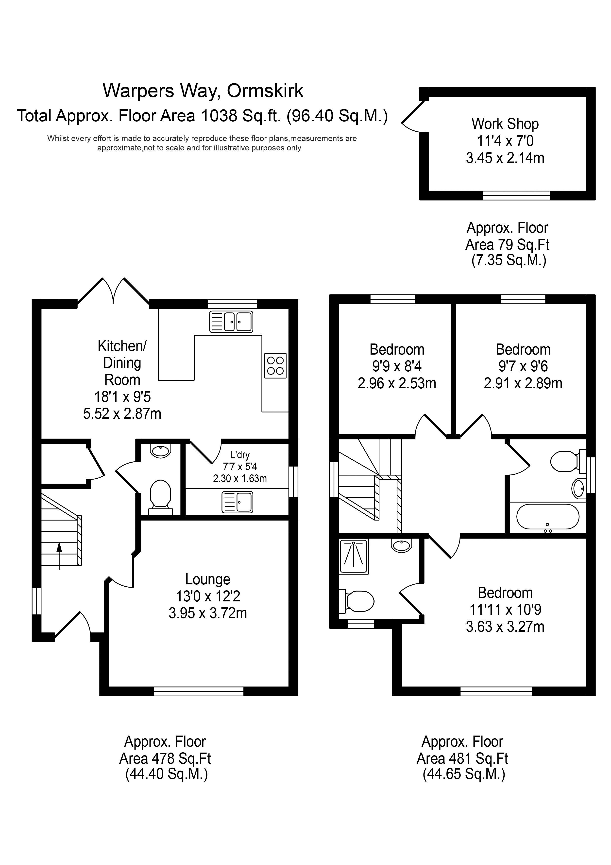 To the first floor, the spacious landing provides access to the three good-sized bedrooms, all of which are filled with natural light, with the master bedroom boasting a smart three piece en-suite shower room and the remainder of the family catered for by the main bathroom, which is fitted with a three piece suite in classic white comprising of WC, pedestal wash hand basin and panelled bath with shower handset attachment.