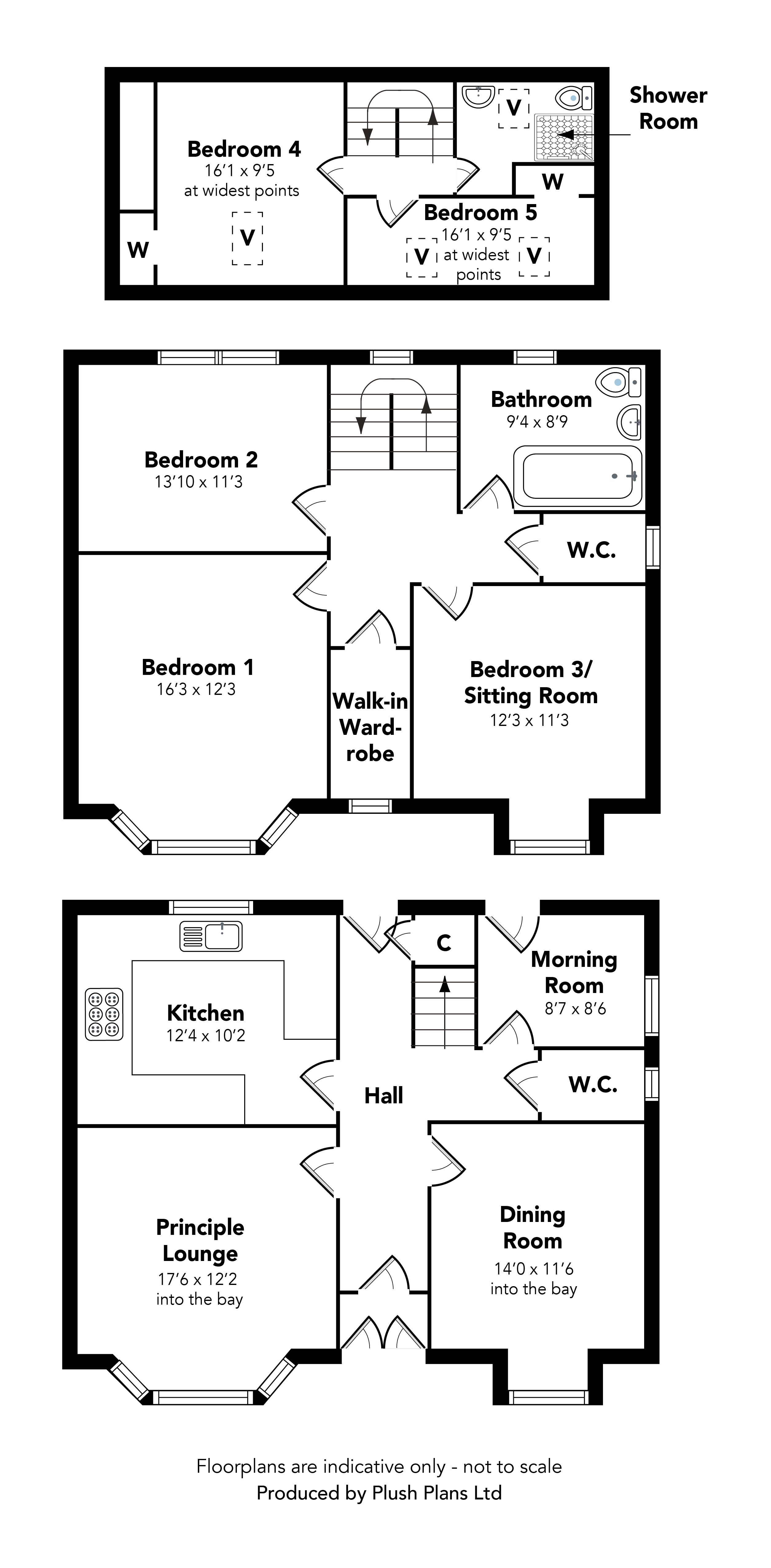 The stairwell leads to the upper level and has a stained glass window. The first floor provides three double bedrooms which have a flexible layout and could easily be used as additional public rooms. Bedroom one has a bay window and a gas fire and bedroom two has a box window and a gas fire. There is a walk in wardrobe providing the master bedroom with excellent storage. The luxurious family bathroom is also on level one and has an over the bath shower and double vanity unit. There is a separate WC also on this level.