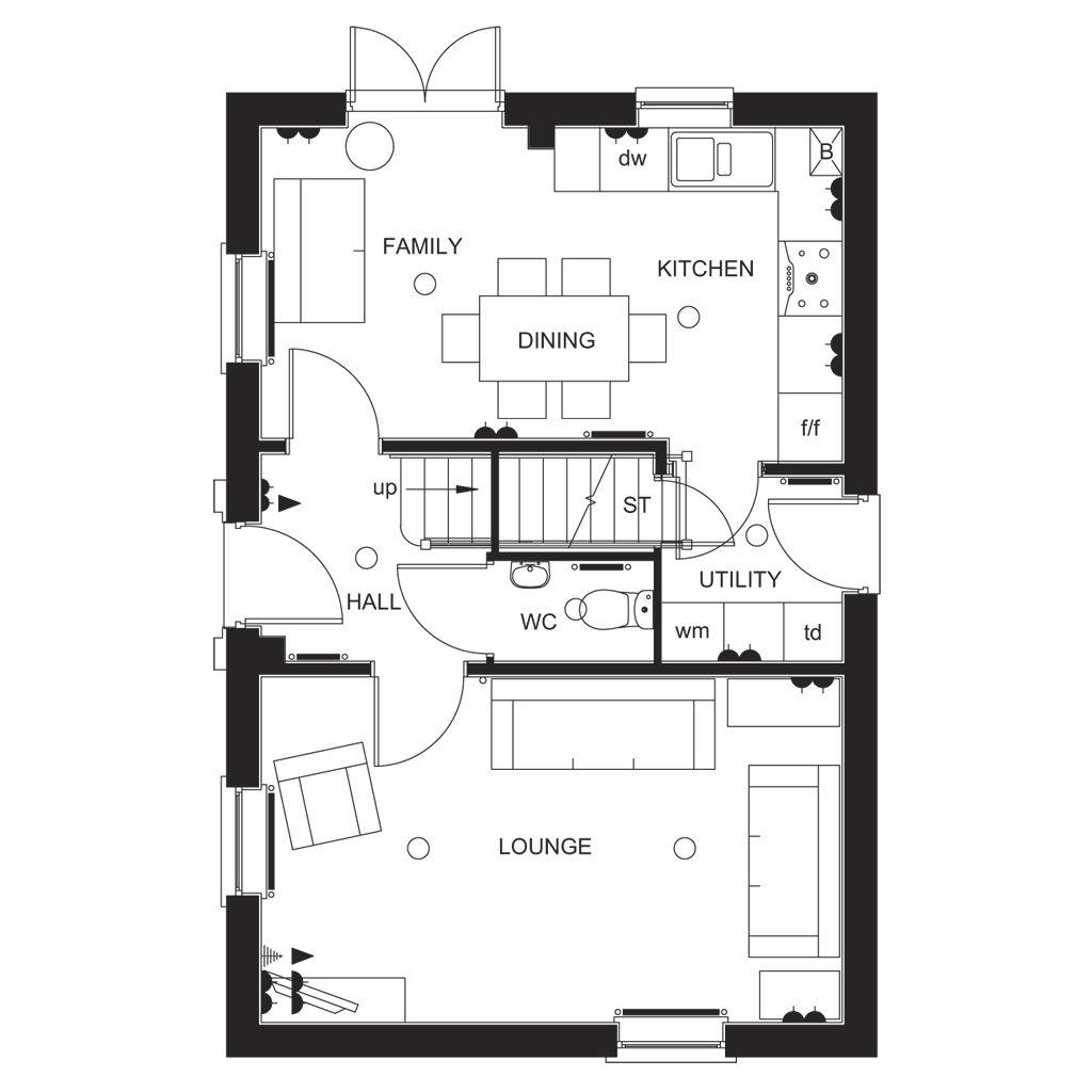 The Hadley is a three bedroom, detached family home. The downstairs space is light and bright with a dual aspect view from the lounge. The kitchen diner creates a great family space with French doors to the garden. There's also a useful utility room, cloakroom and extra storage. Upstairs, there are two double bedrooms with an en suite to the master, a further single room and a family bathroom.