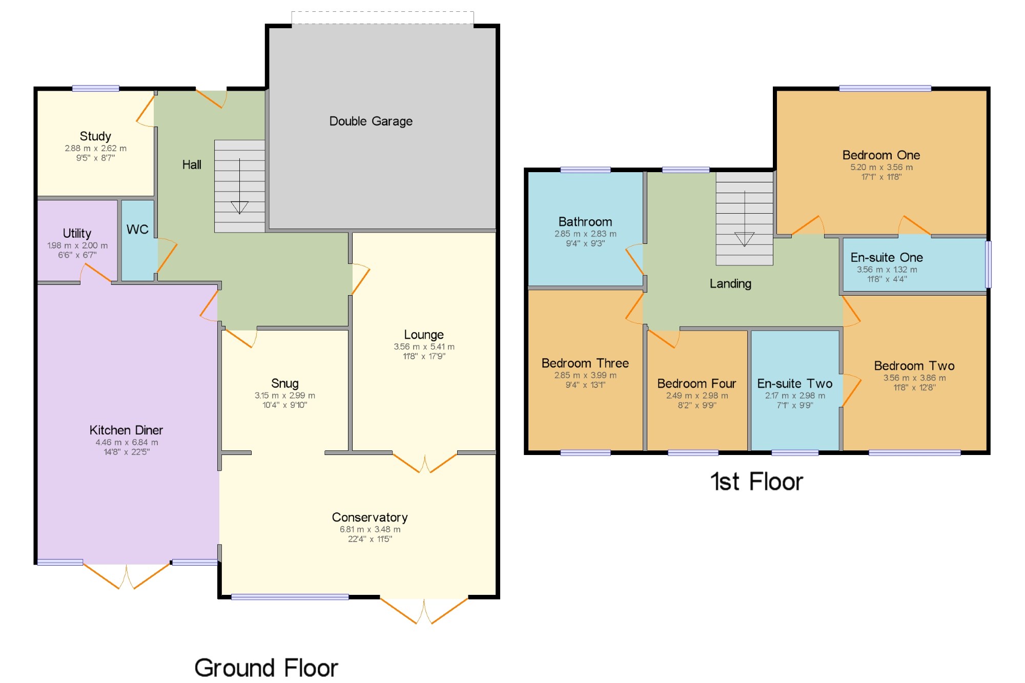 Hall, wc, study, lounge, kitchen diner, utility, conservatory